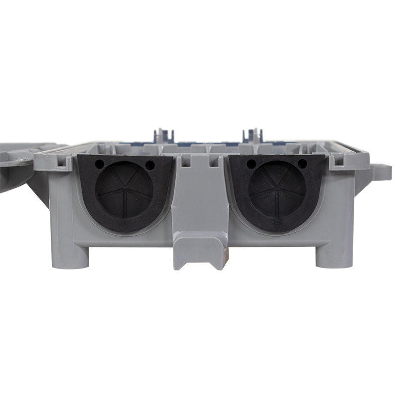 • Integrated splice tray for up to 18 single fusion splices or 6 mass fusion
