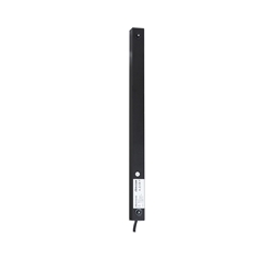VPB-5151415V features (14) NEMA 5-15R outlets protected by a single 15A circuit breaker, a reset button in the event of an overload, and a durable anodized aluminum chassis. A 10 ft power cord with a NEMA 5-15P plug connects to an external power supply, while the versatile mounting design allows outlets to face any of three directions.