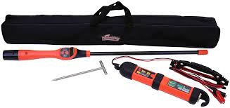 receiver, transmitter, direct connection cables, ground stake, soft sided case,