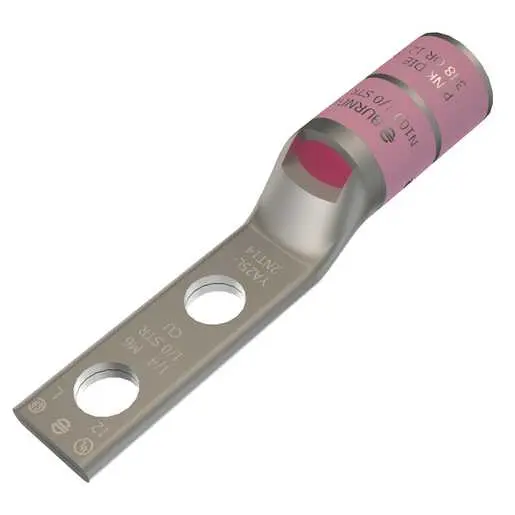 Burndy YA25L2NT14E1, Compression Terminal, 1/0 AWG Cu, 2-Hole, 1/4″ Stud, 1″ Spacing, Narrow Tongue