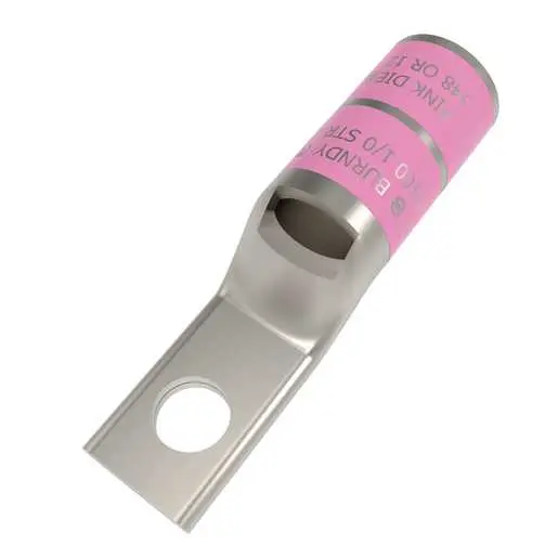 Burndy YA25LNT14, Compression Terminal, 1/0 AWG Cu, 1-Hole, 1/4″ Stud, Narrow Tongue