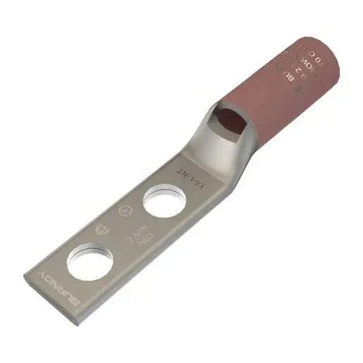 Burndy YA2CL2NT14E2, Compression Terminal, 2 AWG Cu, 2-Hole, 1/4″ Stud, 1/4″ Spacing, Narrow Tongue