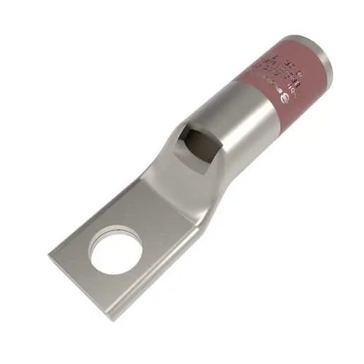 Burndy YA2CLNT14, 2 AWG, CU, 1 Hole, 1/4 Stud, Standard Barrel, Inspection Window, Narrow Tongue