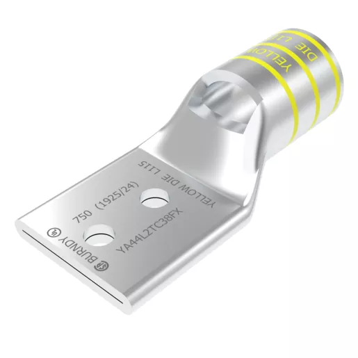 Burndy YA44L2TC38FX, Cu Compression, 2-Hole, 3/8″ Stud, 1″ Spacing, Standard Barrel, 750 kcmil G, H, 777 DLO