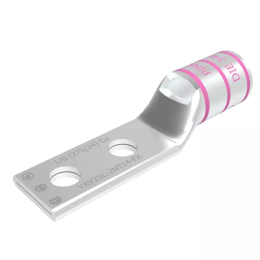 Burndy YAV25L2NT14FX, Cu Compression, 2-Hole, 1/4″ Stud, 5/8″ Spacing, Standard Barrel, Narrow Tongue, 1/0 Flex