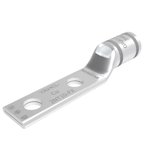 Burndy YAV4CL2NT10FX, Compression Terminal, 4 Flex G, H, I, K, M, DLO, $ AWG Cu, 2-Hole, #10 Stud, 5/8″ Spacing, Narrow Tongue