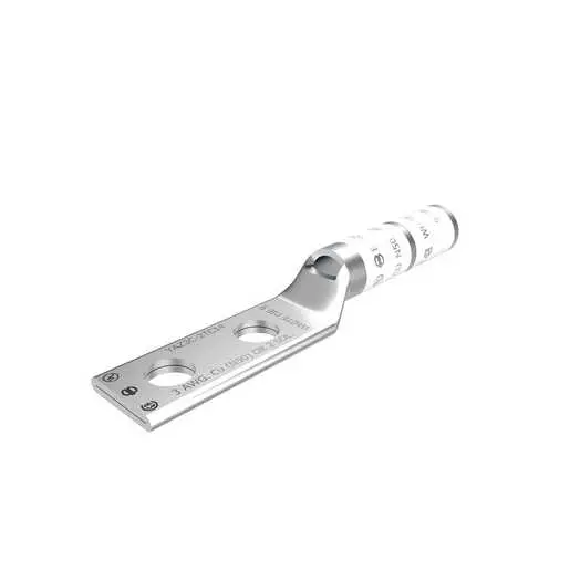 Burndy YAZ3C2TC14, Compression Terminal, 3 AWG Cu, 2-Hole, 1/4″ Stud, 5/8″ Spacing, Long Barrel