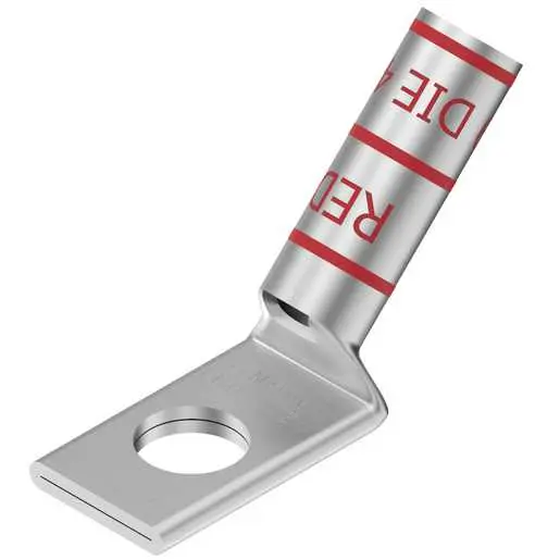 Burndy YAZ8CTC1445, Compression Terminal, 8 AWG Cu, 1-Hole, 1/4″ Stud, Long Barrel, 45 Degree