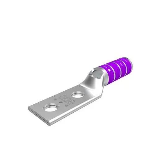 Burndy YAZV282NT38FX, Cu Compression, 2-Hole, 3/8″ Stud, 1″ Spacing, Long Barrel, Narrow Tongue, 4/0 Flex G, H, I, K, M, DLO, 4/0 AWG